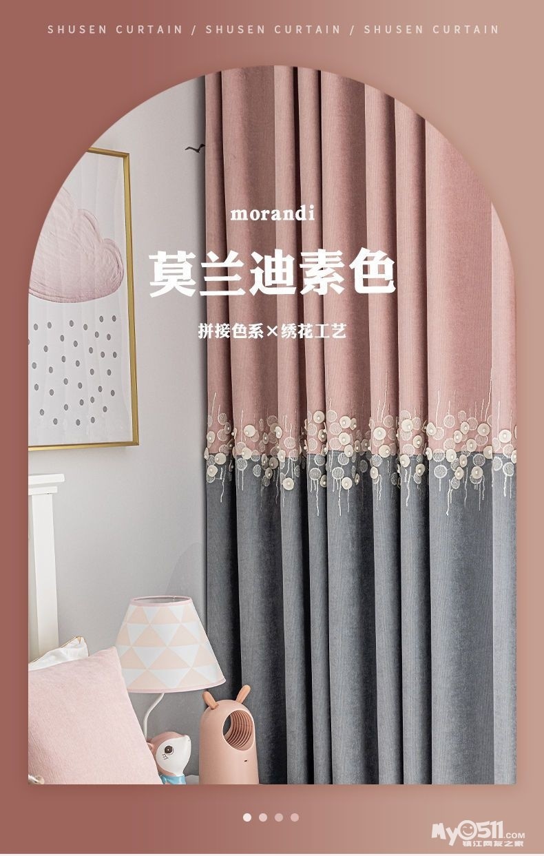 布料雪尼尔,遮光效果好,拼接绣花工艺,适合卧室。尺寸可改短,要的可以自己来拿,13327777620