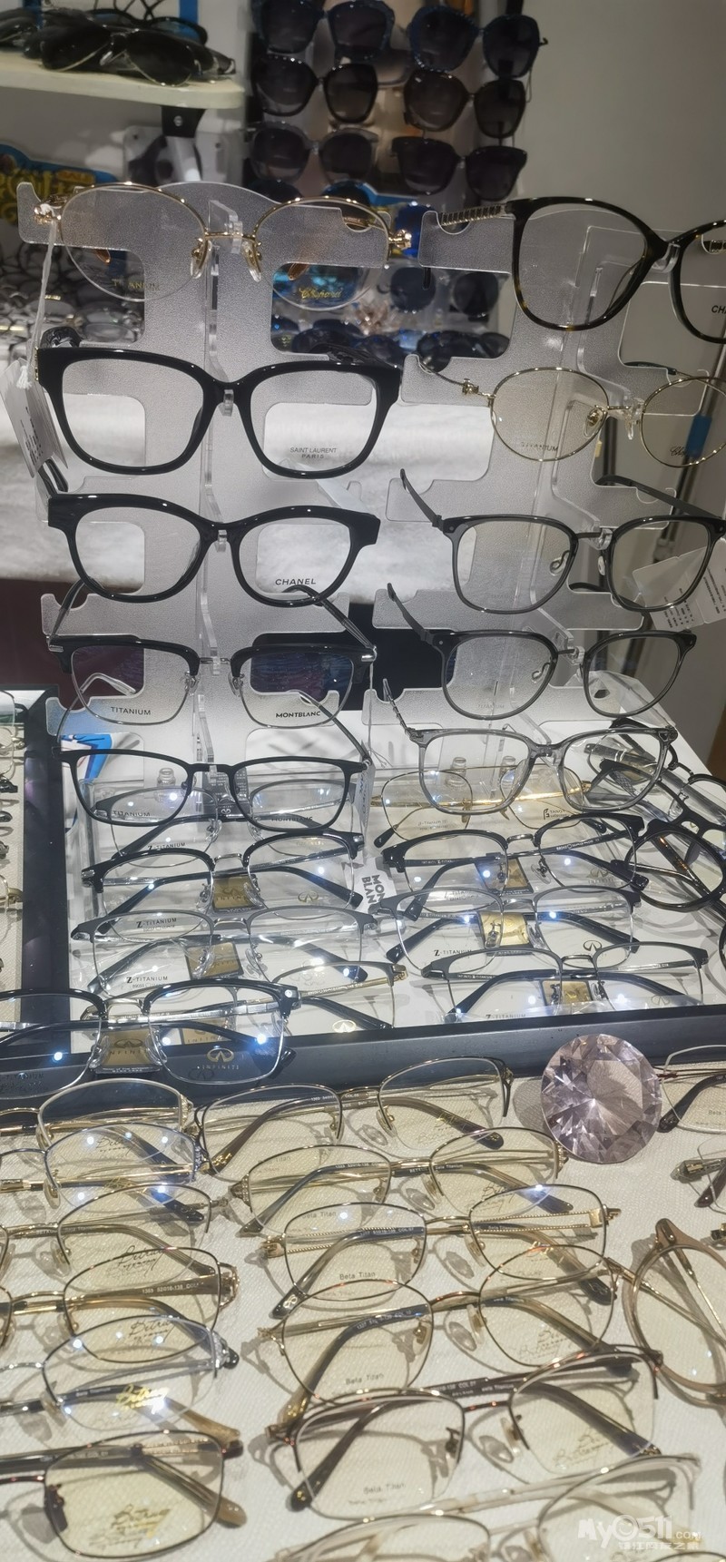 店里的镜框,随便挑都是硬牌子:魅影、凯迪拉克、法兰斯顿、老爷车、格曼苏尼、梦特娇、索菲亚、雪佛莱、帕莎……还有不少新款,以前在老店要标高价的款,现在全按低于成本价/工厂价出,相当于“捡漏”大牌;镜片更是不用多说,各大品牌都有,直接给到“车房价”,比市面常规价低一截。