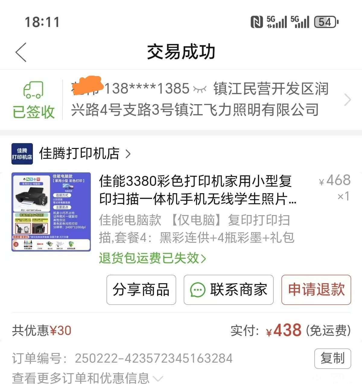 » 佳能打印机 8成新 送墨水 180
