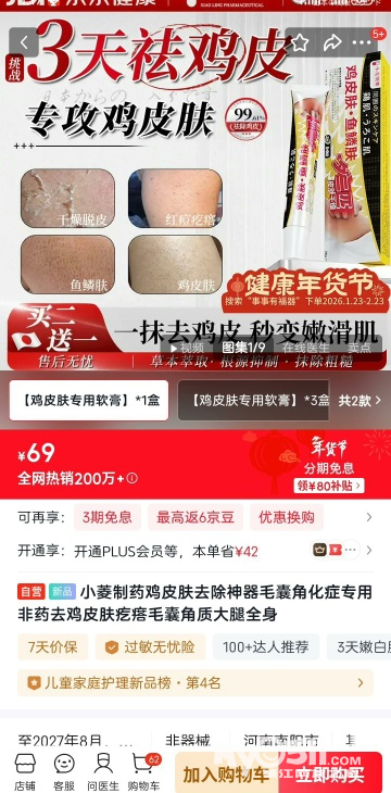 [2]川廿制药鸡皮肤去除神器鸡皮肤疙瘩角质去除大腿胳膊手臂毛囊角化专用药膏