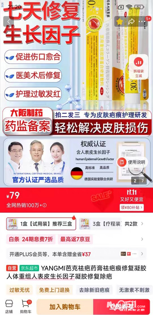 临期甩…京东闲置~好用的祛疤膏。YANGMI芭克祛疤药膏祛疤痕修复凝胶 表皮生长因子30g装,带原包装盒,保质期到2026.8.14,日本大阪制药,20元一支价格,5元多给一支