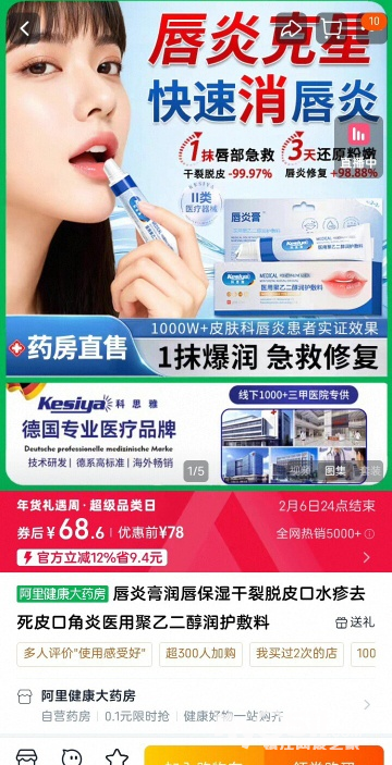 【天猫】科思雅牌,15ml保湿防干裂
