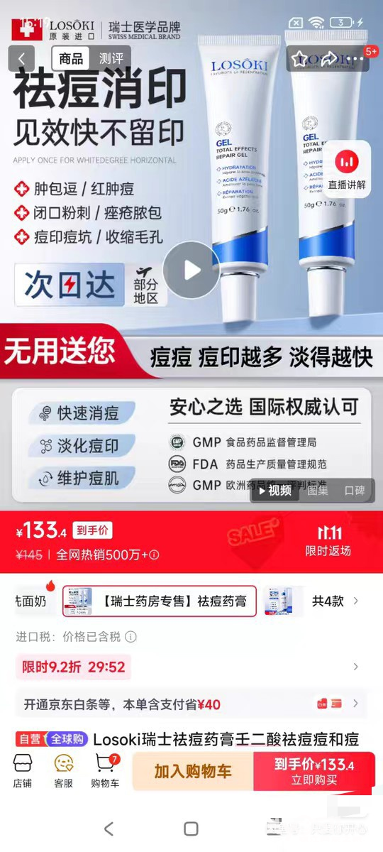 2~京东闲置35元~Losoki瑞士医学祛痘膏50g大管,带原包装盒,正品保证,保质期到2027年10月