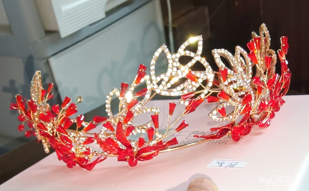 转全新高级精美皇冠,千色新娘饰品店购入,原价180元,全新,一次都没用过,皇冠冠体用红色造液花和金色亮钻花朵制作而成,直径15CM,一直闲置没用过,最低30出了,自取,有需要的微信同号18952928848,靠近学府路外国语 学校,原老高专