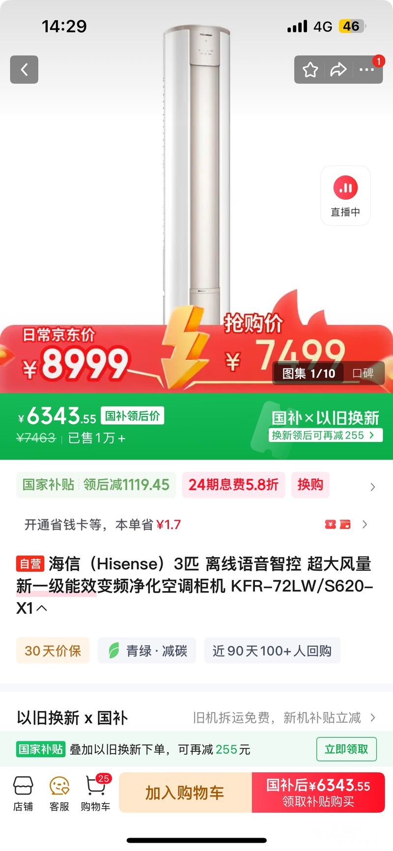 全新海信空调柜机一台5100