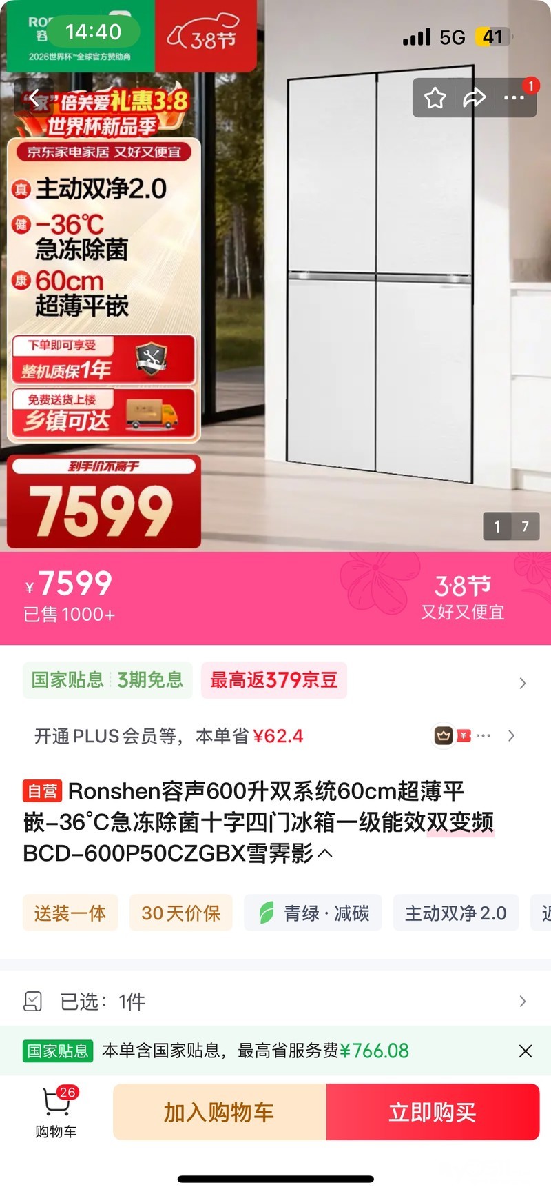 全新容声冰箱一台6300
