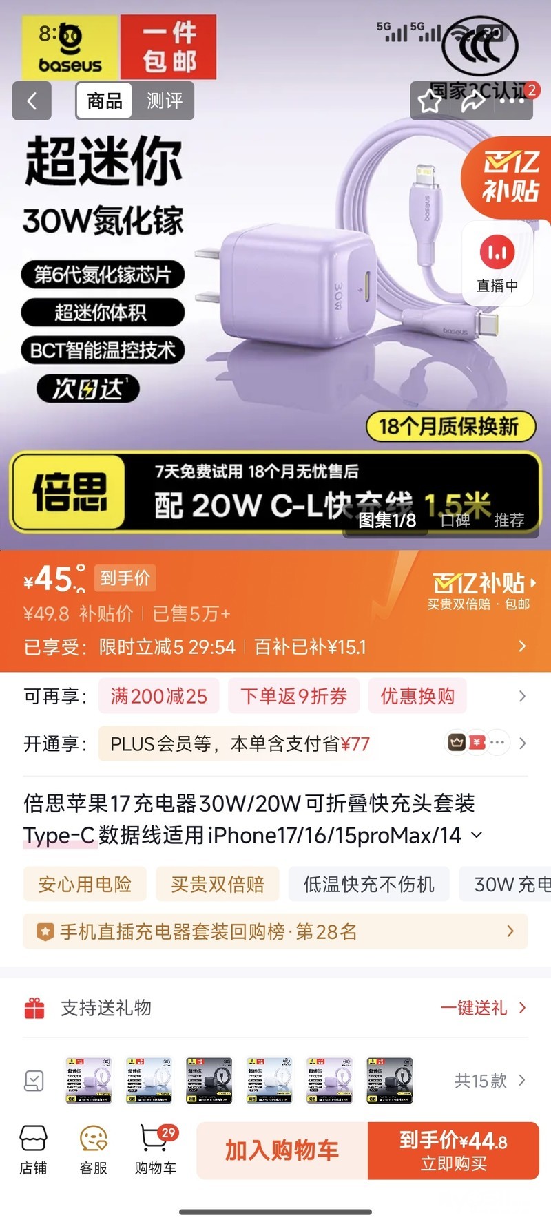 转让 倍思 低温适配苹果专用Type-C30瓦充电器套装 [广告推广]