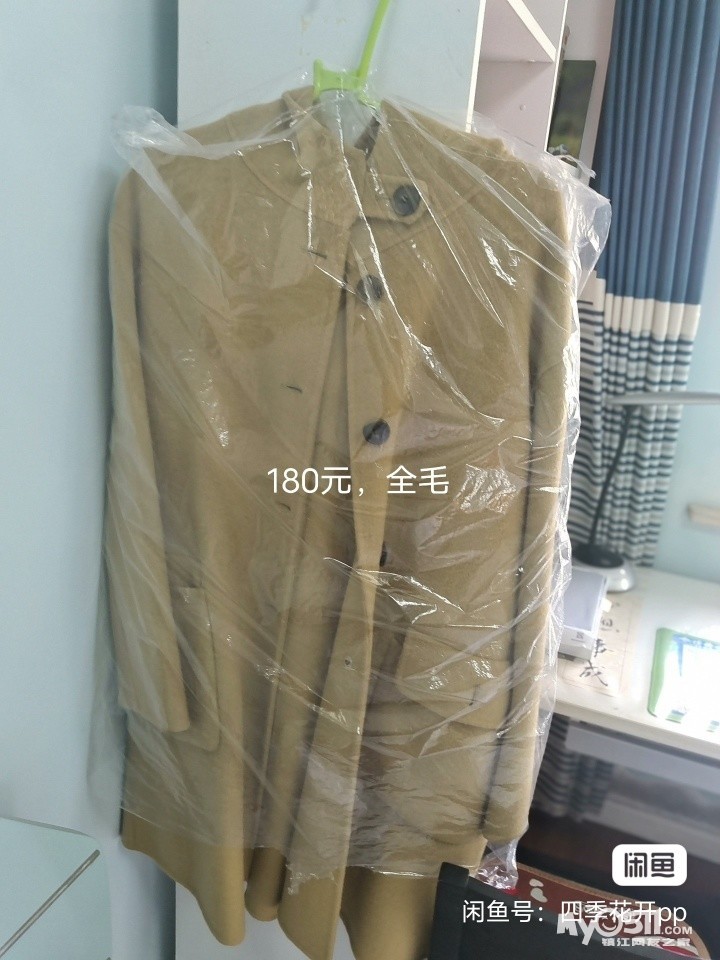 全毛休闲大衣,卡其色,100%全毛面料,手感柔软舒适。款式简单大气,两侧口袋实用。衣服9成新,适合春秋两季,可以试穿,喜欢的私聊
