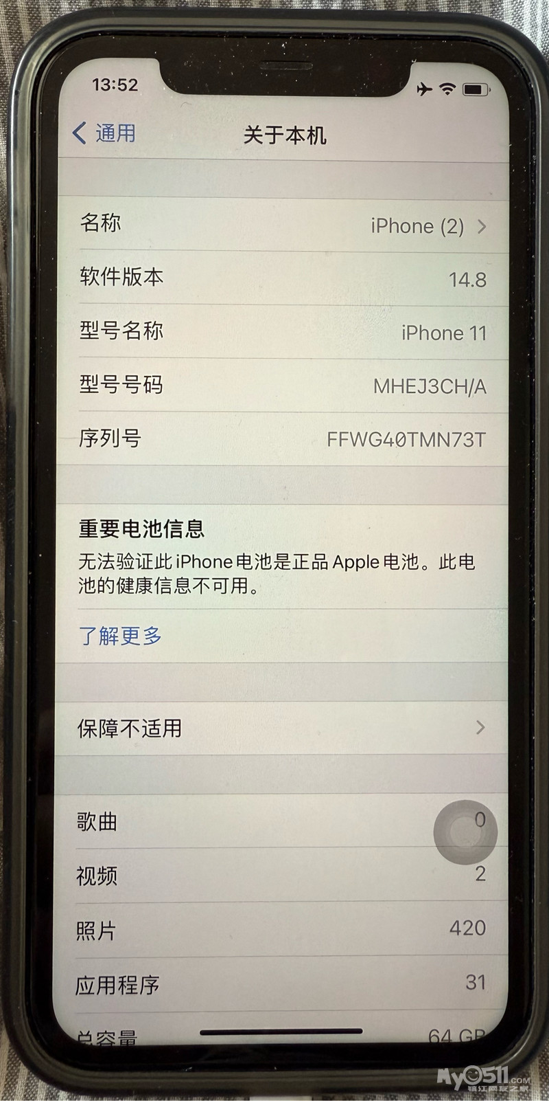 配置:苹果11,国行64G,刚换电池不久,电池接近原装电池,两百多换的,目前待机时间长。系统是14.8,老系统,用的很丝滑。因换新机,低价出了。无任何毛病。价格800元,不还价。