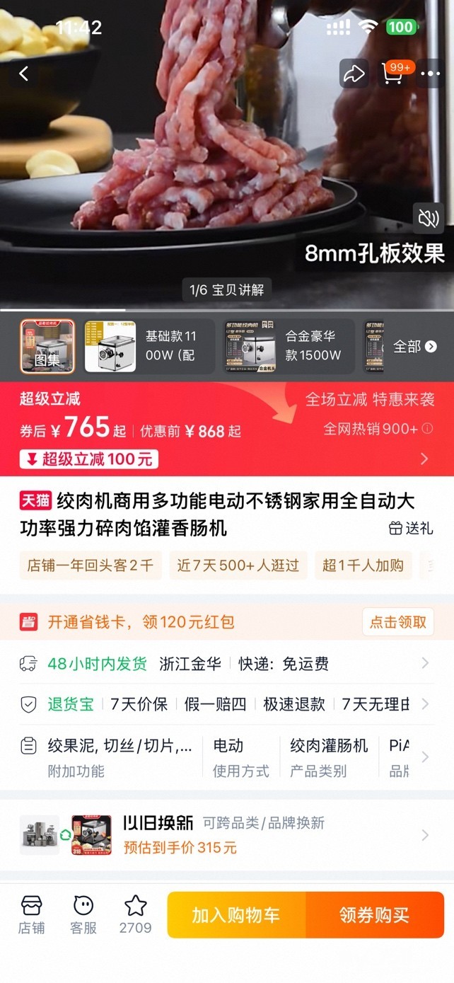 出一个绞肉机,商用家用都可以,买来只用过一次就搁置了,当时买765,现在280出,需要联系17361963080(微信同号)