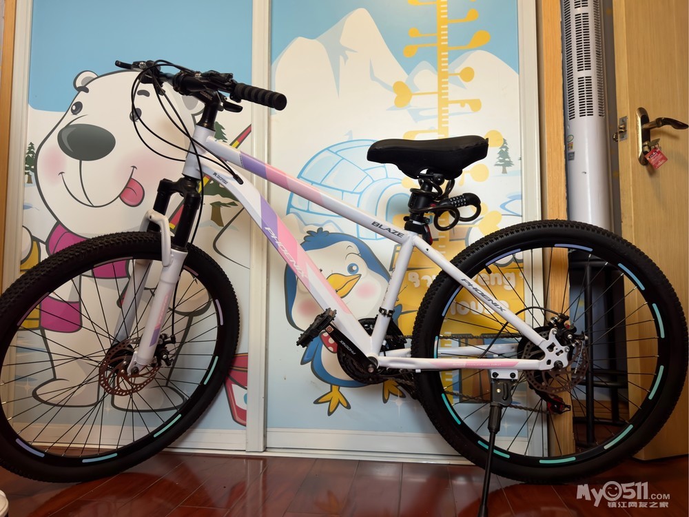 凤凰山地车,几乎全新99新,26寸21速,白色车架,指拨变速器,前后碟刹功能正常,轮胎花纹深骑行流畅。后配的自行车加厚硅胶坐垫,山地车密码锁,打气筒,全部免费赠送!390,丁卯自提!
