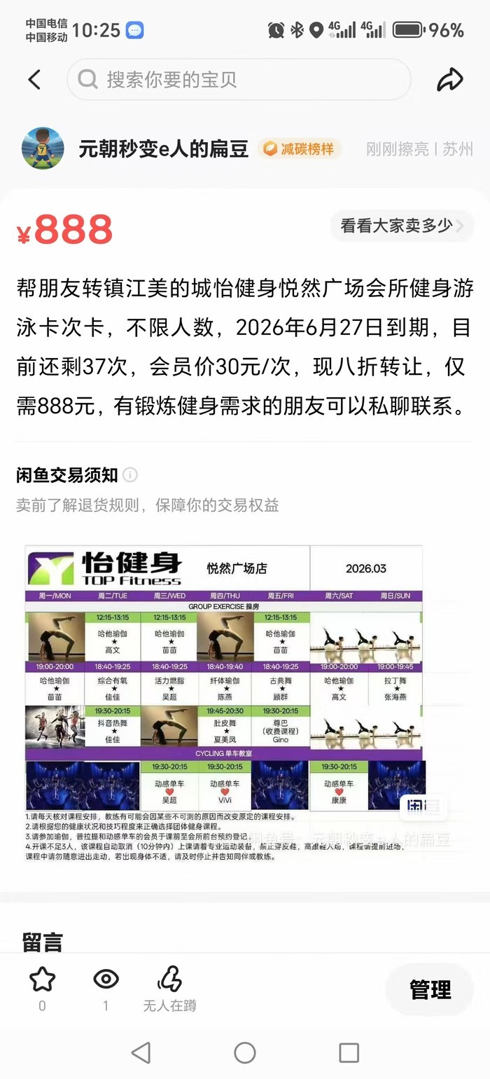 会员卡2026年6月27日到期,还有37次游泳健身卡,不限人数、人员、日次,会员价30元每次,先8折转让。