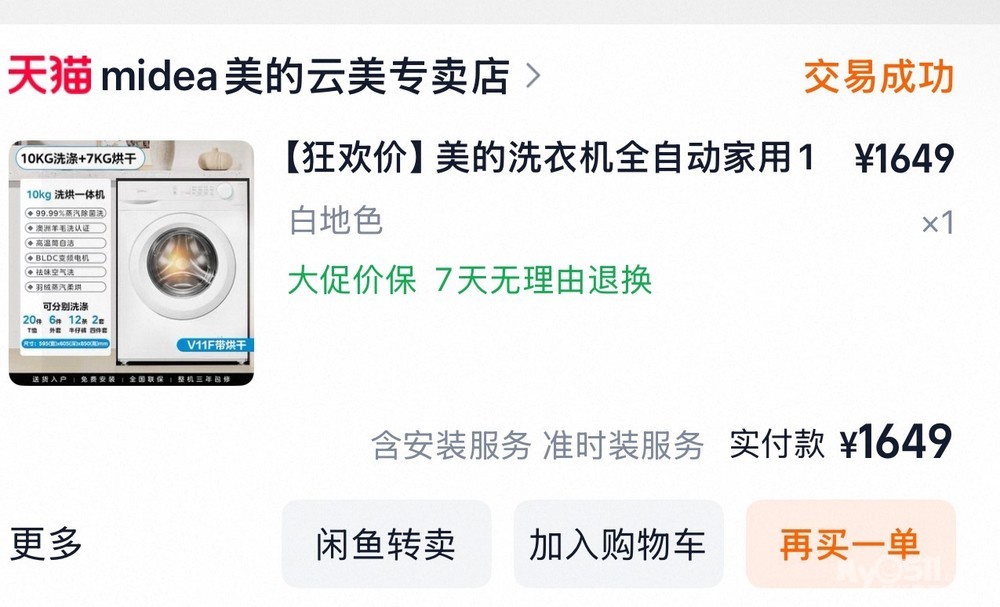 » 洗衣机9新,静音