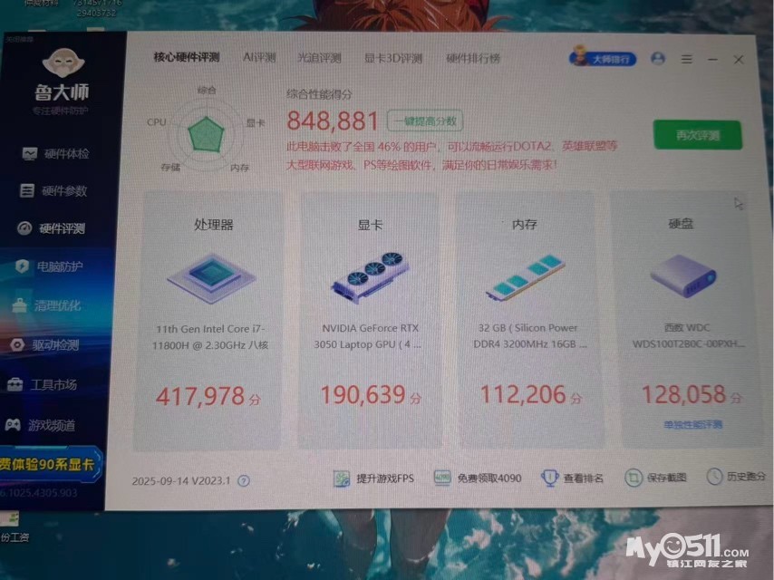 显卡:RTX 3050 4G 笔记本独显,支持光追