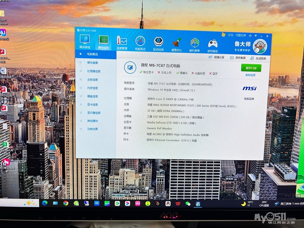 搬家出个人闲置台式电脑一套,i5-9400f主机+32G DDR4内存+250G固态+英伟达1660 6G显卡,鲁大师跑分33W!