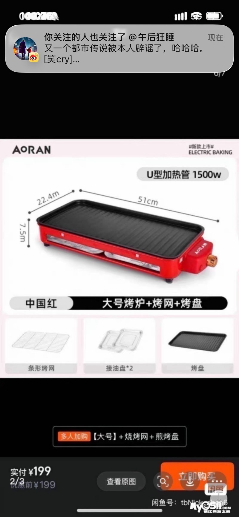 大号电热烧烤架1500瓦 用了一次 98元