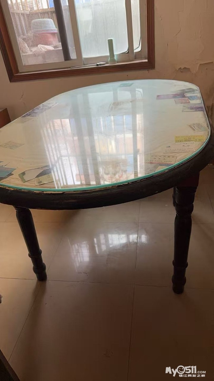 自家闲置实木餐桌椅,1桌6椅,实木框架,结实稳固,正常使用痕迹,无松动无破损。