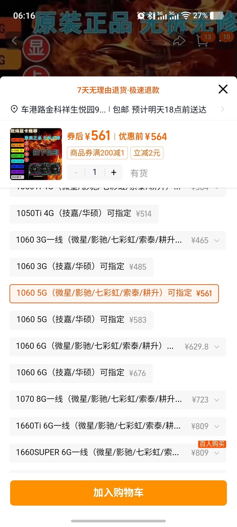 出1060 5G索泰 显卡 ,丁卯自提。