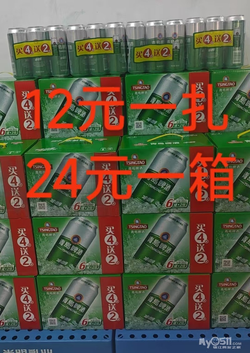 青岛500毫升听装啤酒,特价12元一扎/6听,24元一箱/12听,效期到6月17号