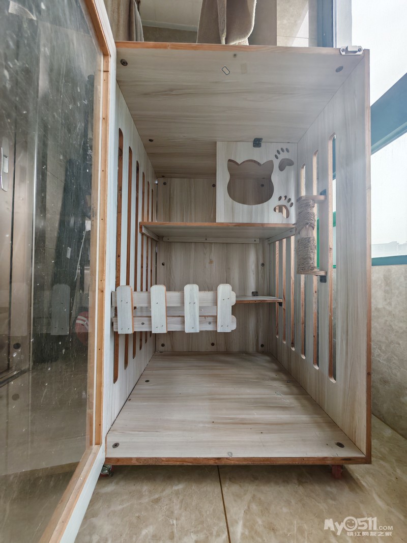 润州区三茅宫:松木三层猫别墅,9成以上新,长宽高60*60*95cm,带轮子方便移动120,实木不是复合板。
