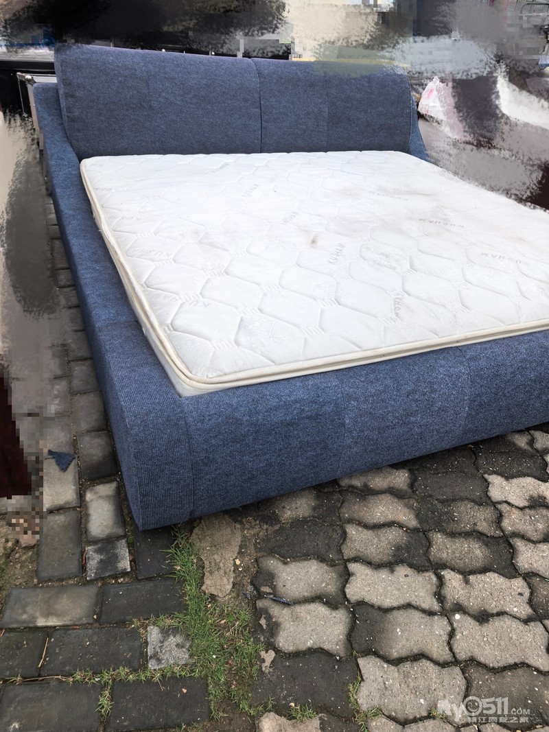 便宜出售一张9成新2米软包大床+席梦思床垫,580元自提