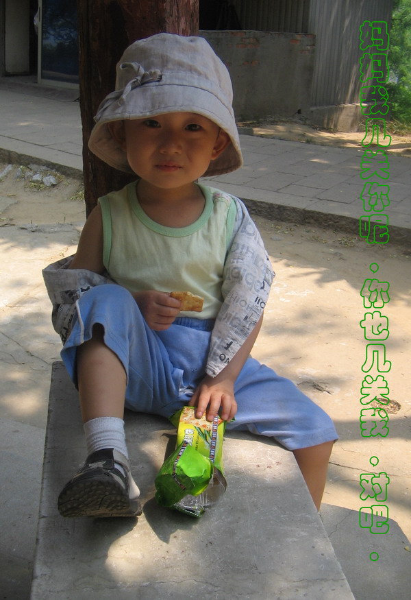 但听"哇~~~~~~~~~~~~~~~~~"一声嚎啕.妈妈把小家伙扶起来.但见他拼命挤着球球的小脸,五官的形状让人想起本地人所谓:"肚肺脸".可怜泪花在眼眶中就是掉不下来.