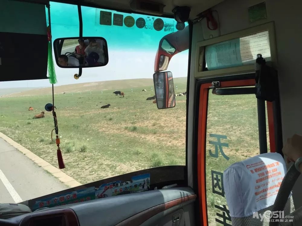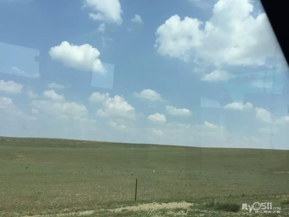 第二天我们的大巴车逐渐驶入希拉穆仁草原,蓝蓝的天空、洁白的云朵和羊群逐渐映入眼帘