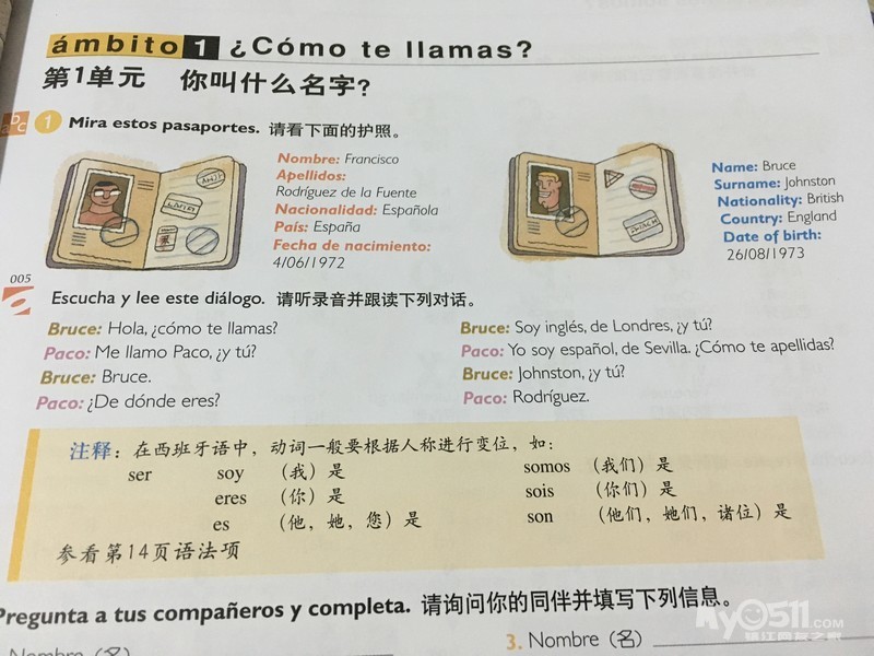 最近每晚增加了一个读西语的项目,也就是把《走遍西班牙》拿出来 听听录音,然后跟读一遍字母表和老师新教的短句子,每次5分钟左右。经过一个多星期读下来,苗苗已经把字母表读的很熟了。西语字母和英语有很多共同之处,写法基本一样,只多了几个特殊字母,另外发音大部分都不同,需要另外记忆。用西语打招呼的短句苗苗已经背的滚瓜烂熟,有时候兴趣所致还会和我炫几句