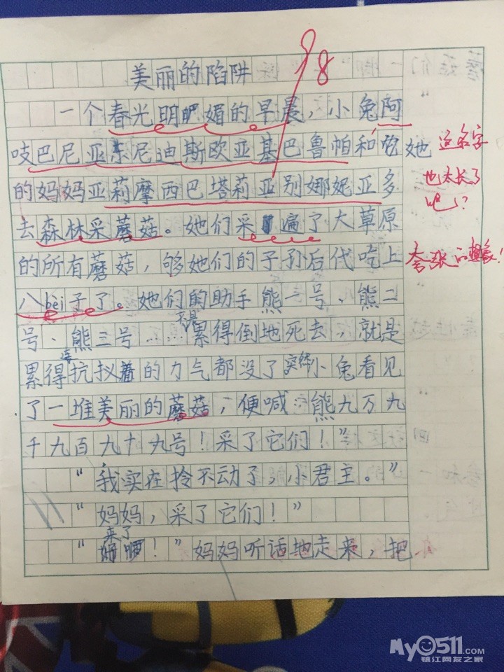 偶见老师在三年级学童作文本上耐心细致的评注……感慨这份包容维护了孩子带有翅膀的想象力
