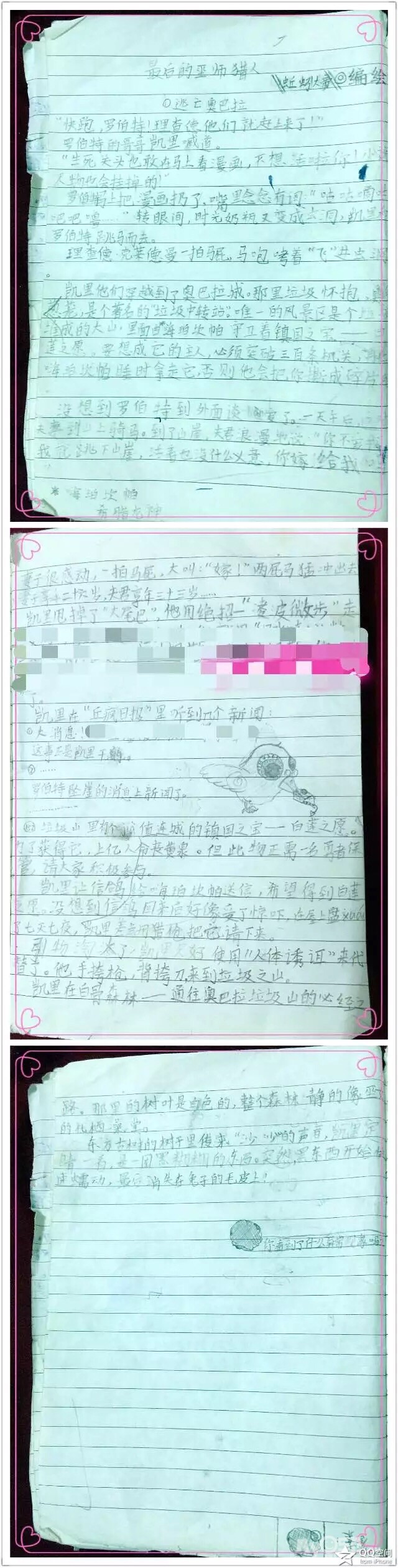 三年级,聊天中获知他们班上有一阵子流行写小说,老师其实晓得,不提倡但也未责怪…很nice的老师。这是他写的… 无限想象力呵