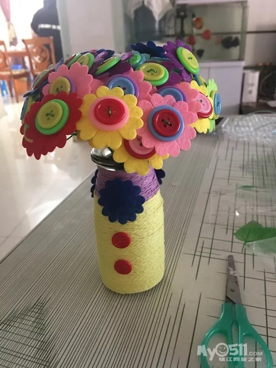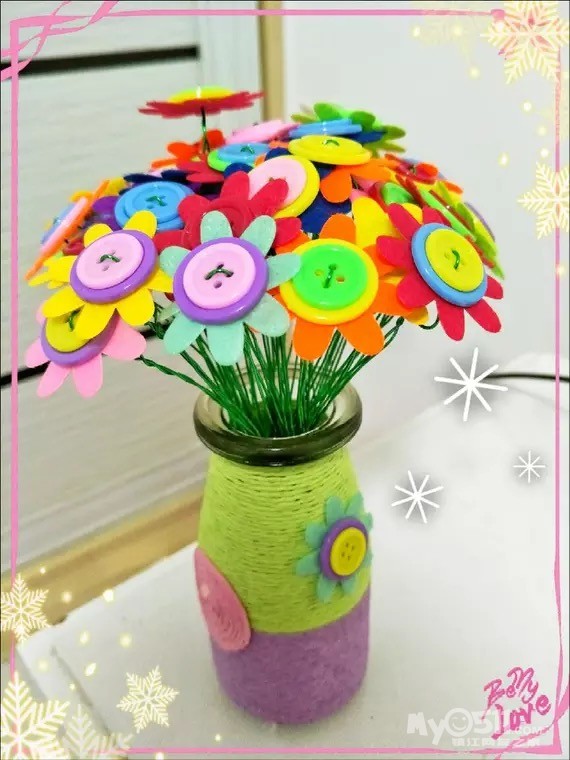 三八节要到了,小朋友们是不是在准备礼物了,今年洋大大可是费了脑筋的,想了又想,还是来点特别一点的吧,亲手做束漂亮的纽扣花。