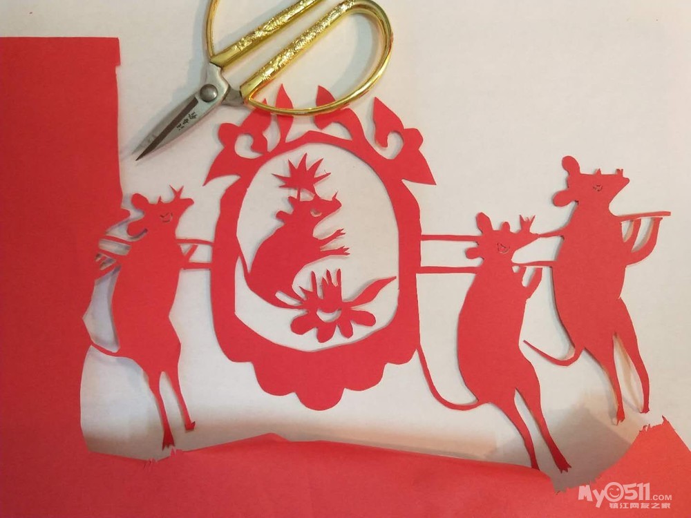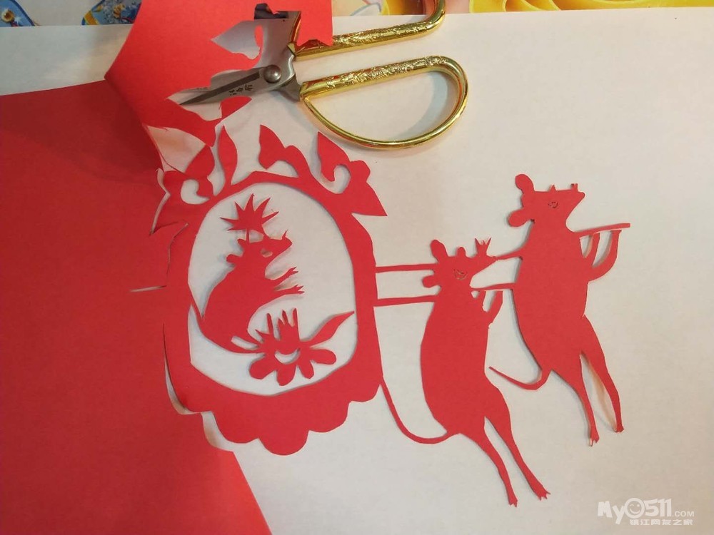 学校的亲子作业极具挑战性,指定的主题作业,剪纸版 老鼠嫁女儿,用了足足两个小时才完成