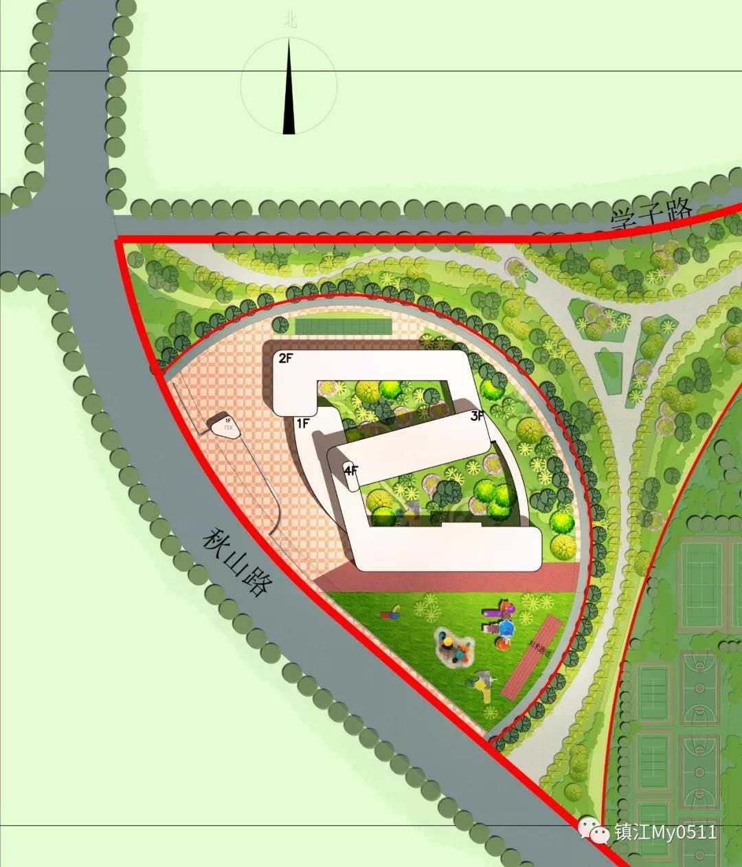 幼儿园位于镇江新区丁卯秋山路,占地25亩