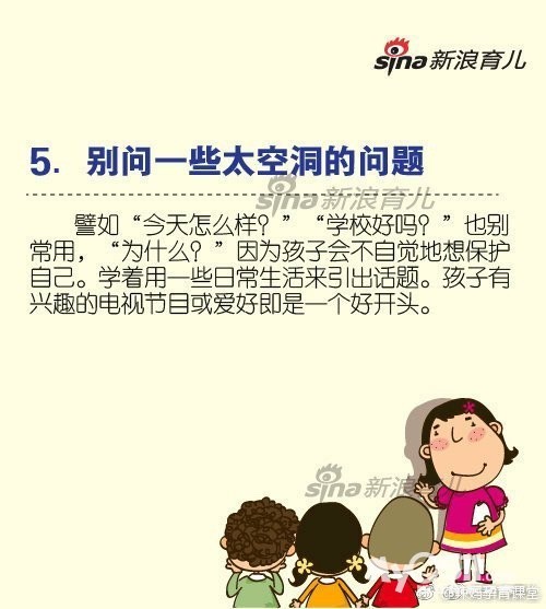 每次孩子听大人谈话好奇心起来,也想插嘴问几句时,家长总会:“小孩子不要插嘴。”或者“你还小,你不懂,赶紧写作业去。”这样一来,孩子还会愿意和我们交流吗?