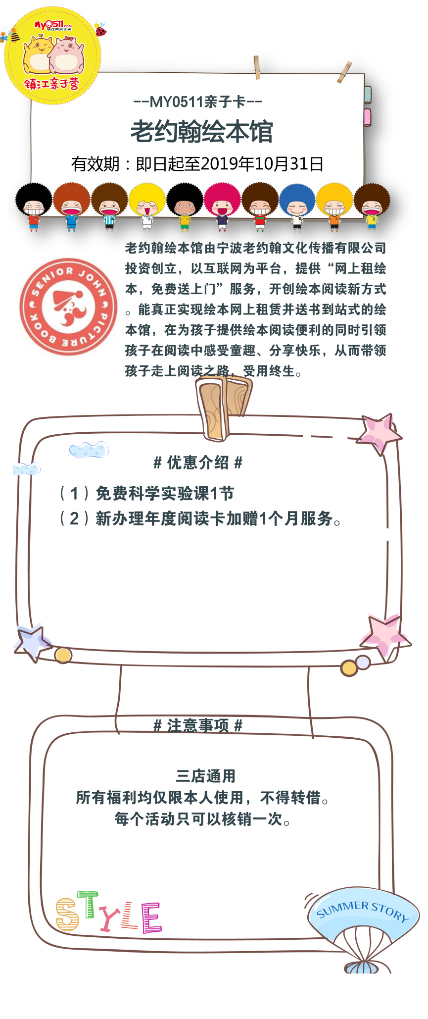 老约翰绘本馆目前已成功入驻MY0511亲子卡,优惠力度更大,时效更长,99元扫码速抢MY0511亲子卡!