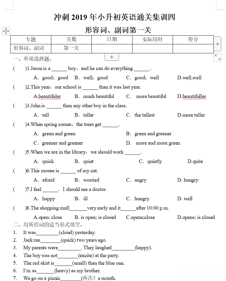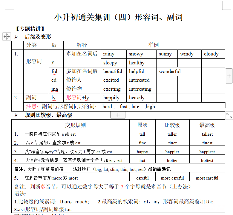 形容词和副词是小升初的易错点,也是中考重点,扎实掌握他们,衔接好小升初!