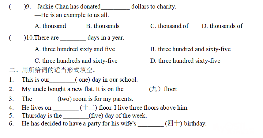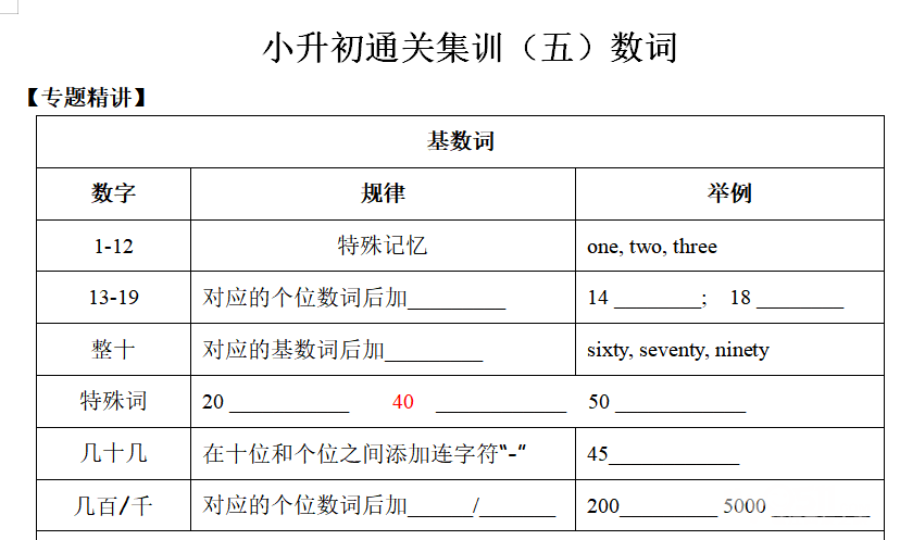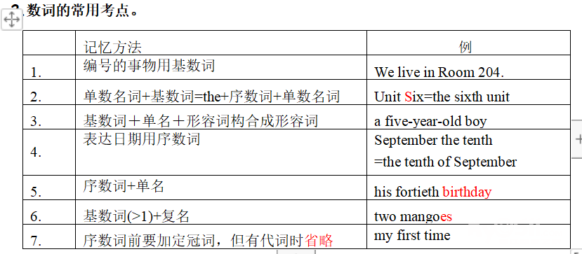 数词知识点相对较为简单,主要是掌握拼写及序数词的变形