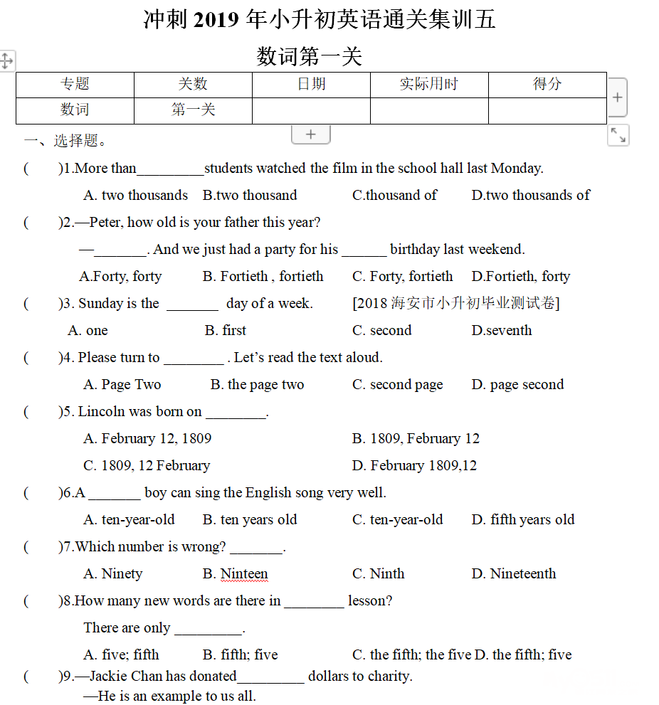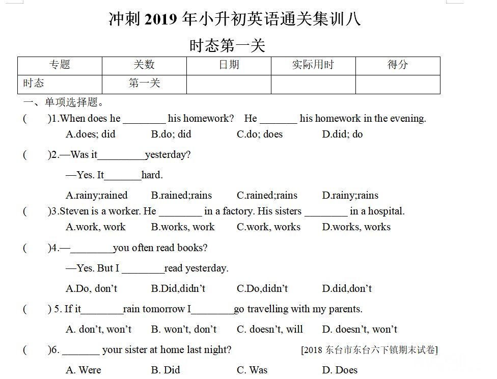 6.过关原则:全对算过关,错一题说明这个专题还有漏洞,小升初就会有失误的概率。