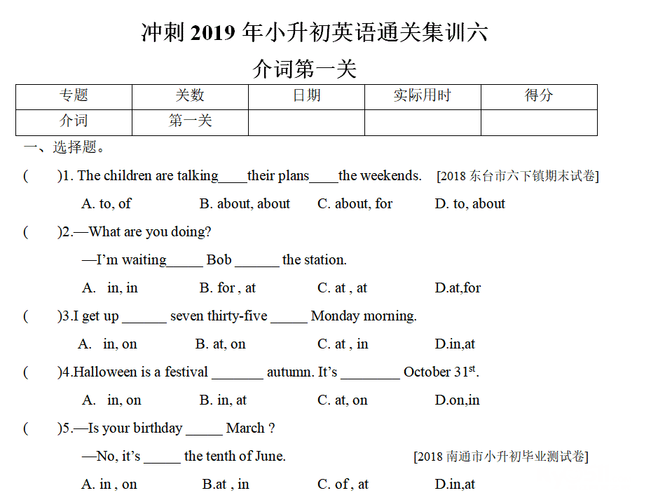 介词闯关(1)已经上传,难度略高于镇江六年级毕业考