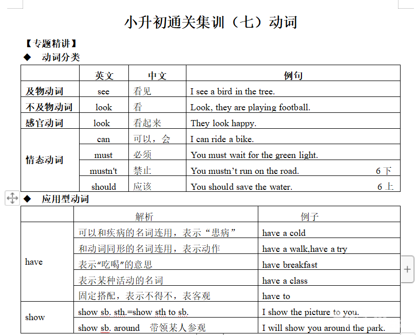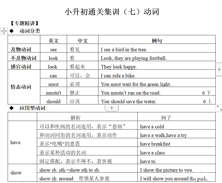 动词已经上传,是小学的难点,也是初中的难点,提前发上来,做好预习,周三直播。