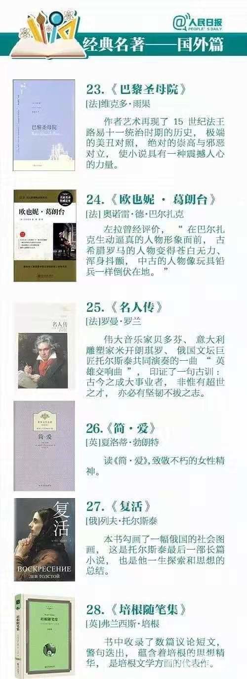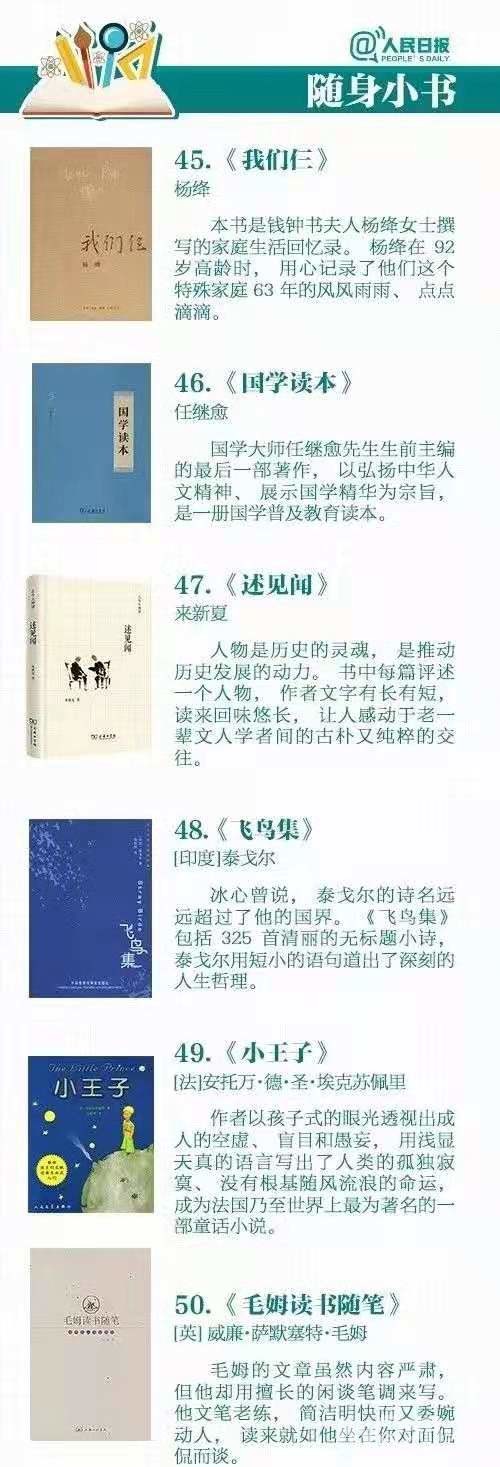 第二份书单来自人民网推荐的中小学生备选好书40本,涵盖经典书目《三毛流浪记》、让人心头一暖的《月亮忘记了》、励志向上的《假如给我三天光明》等优秀书籍,能够让孩子体会每一份感动。