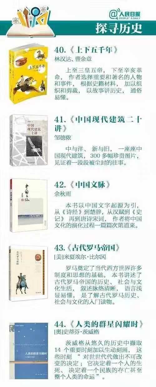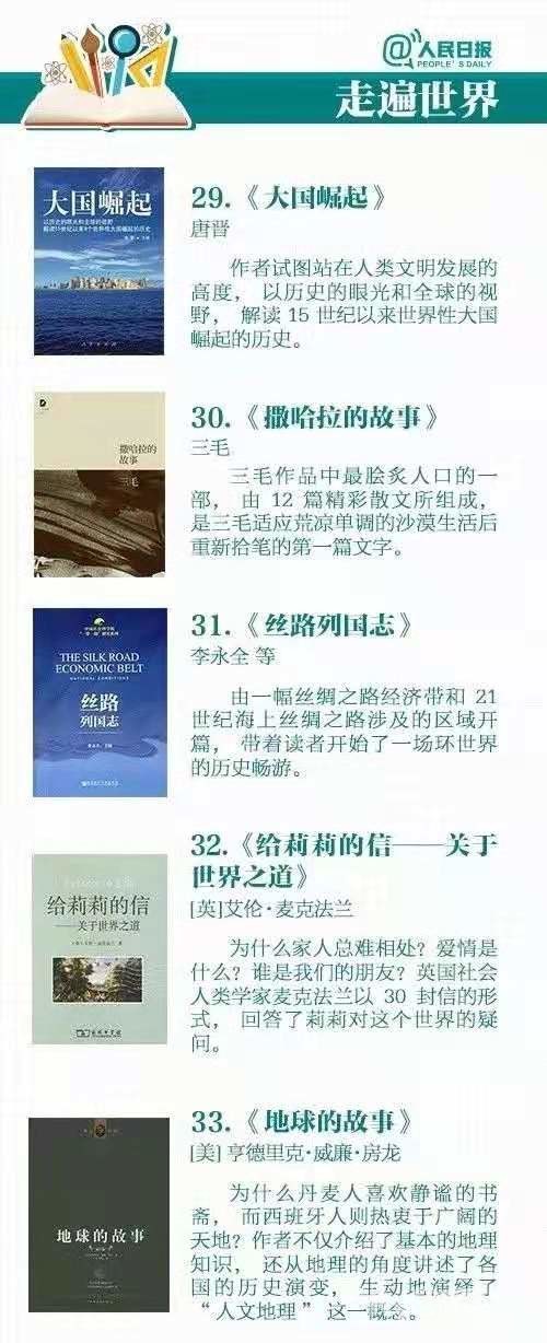 看过8条建议,可能有的家长还需要一份书单来练练手,下面为大家整理了两份书单。第一份来自人民日报推荐的中小学生必备书单,涵盖文化、历史、自然、地理...9大类,50本,部部精彩!