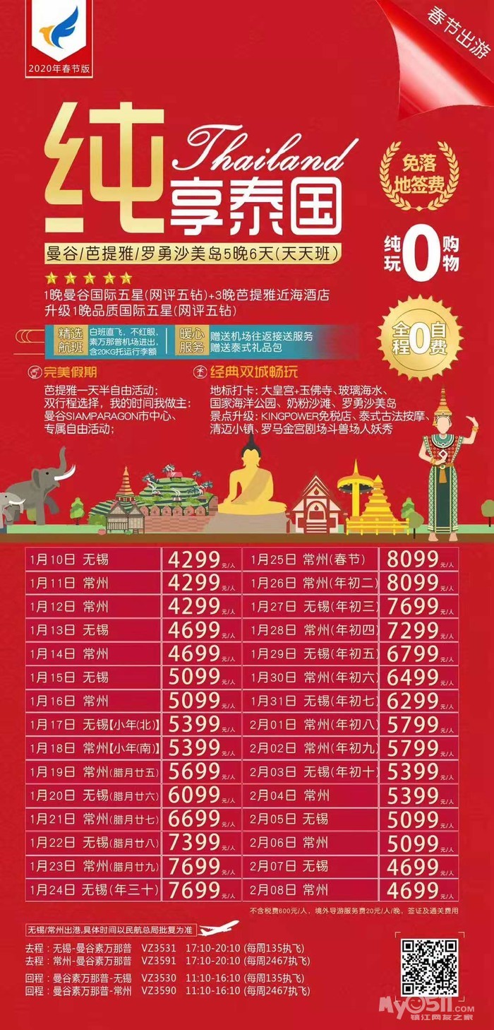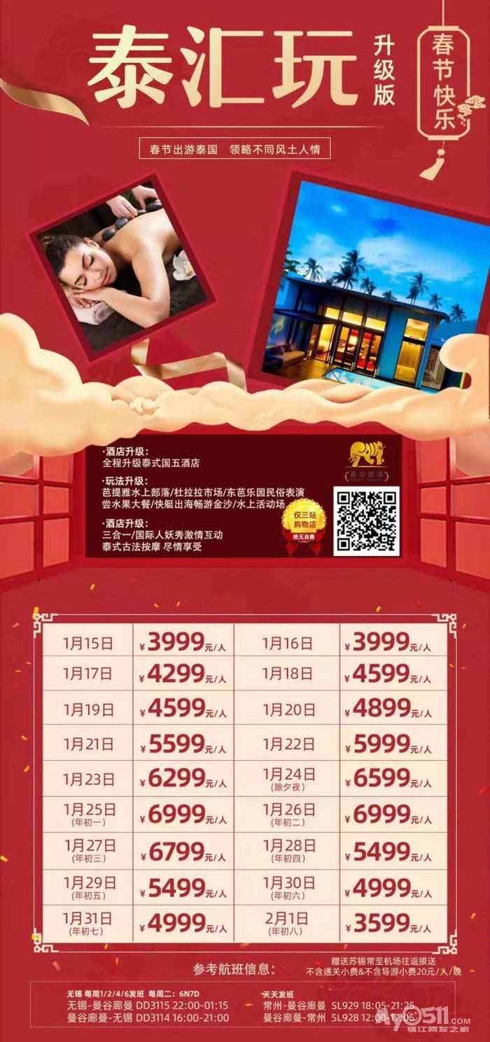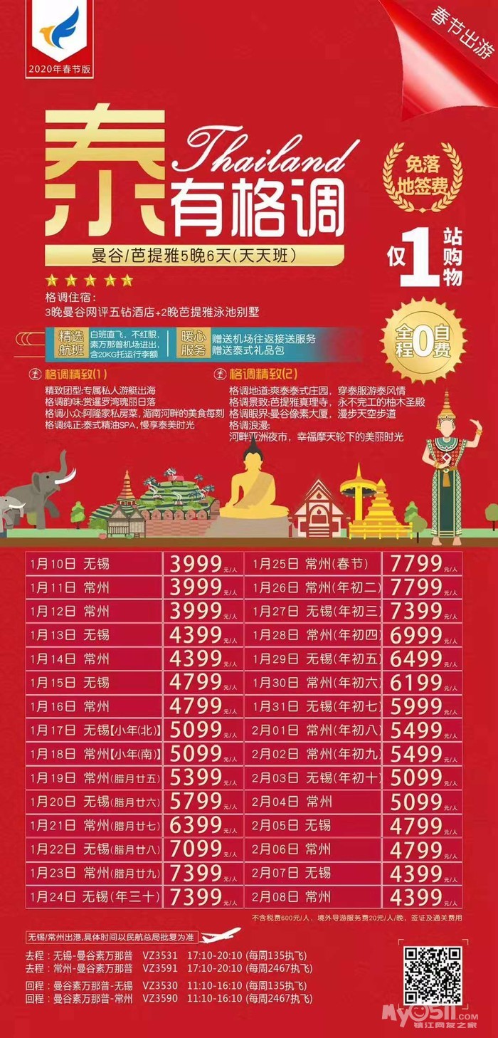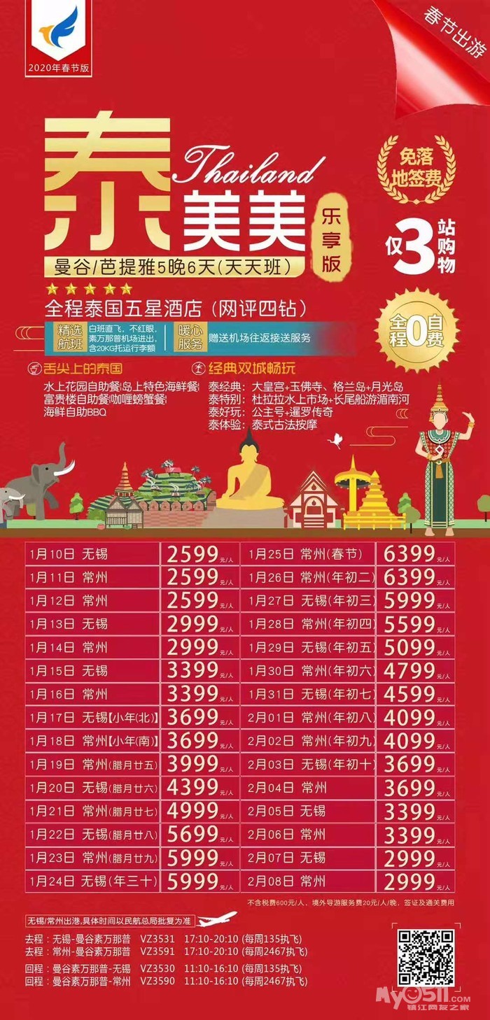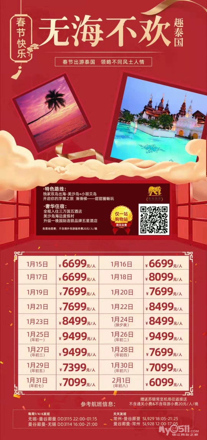 以下线路报名即送镇江至机场往返接送!!!