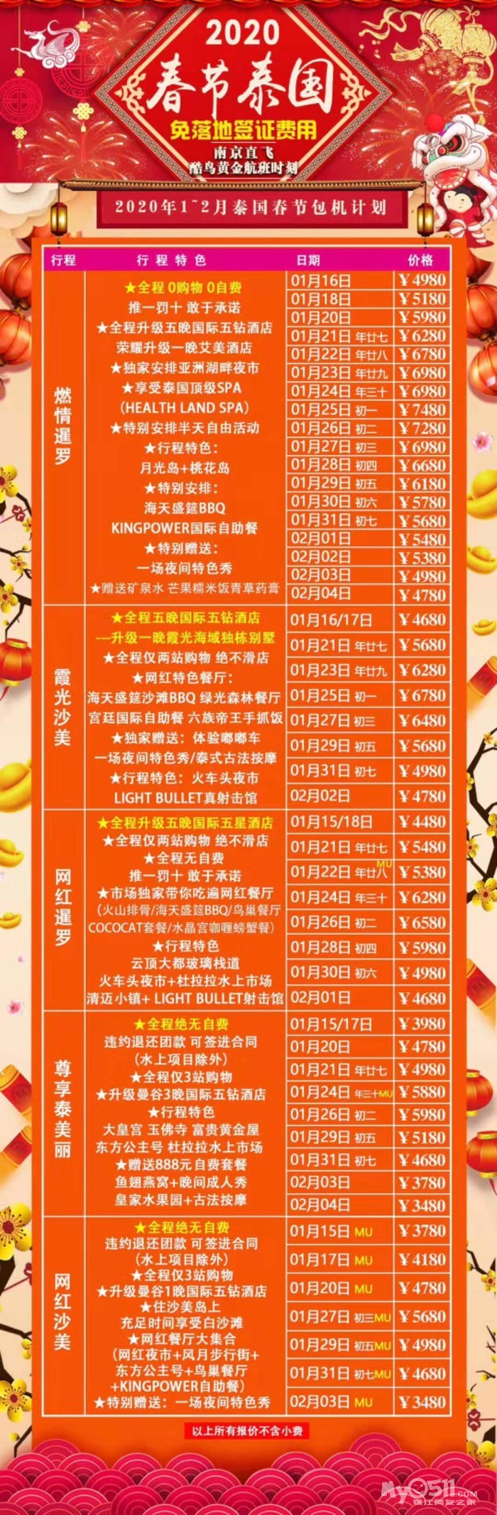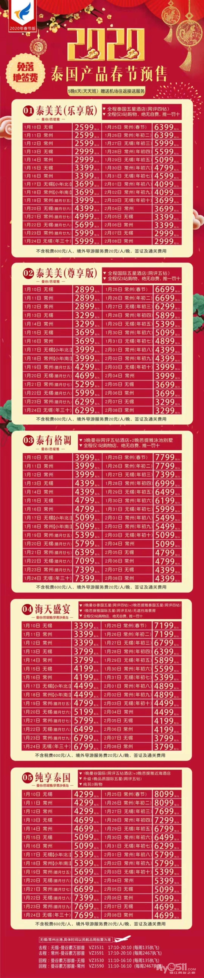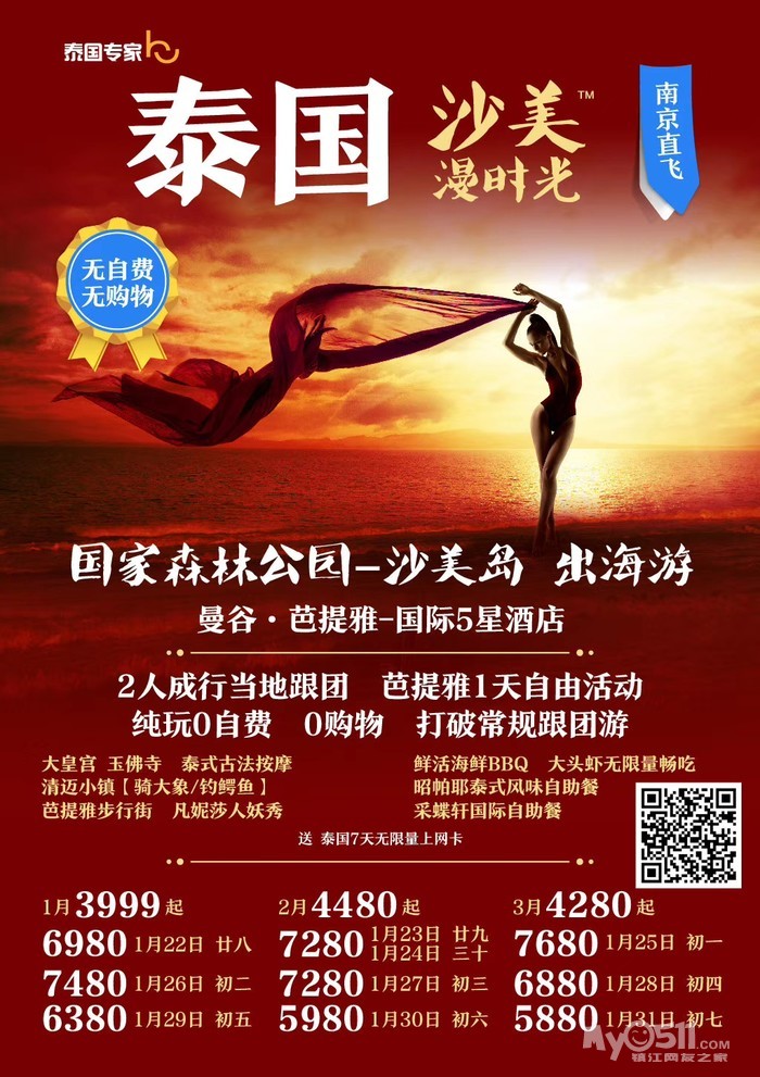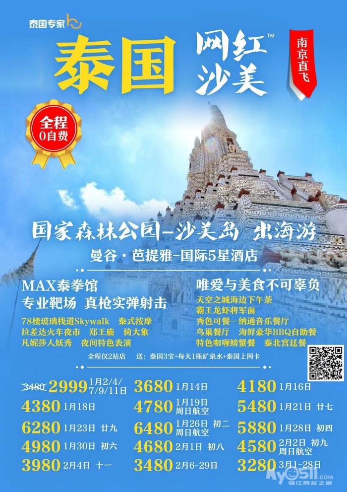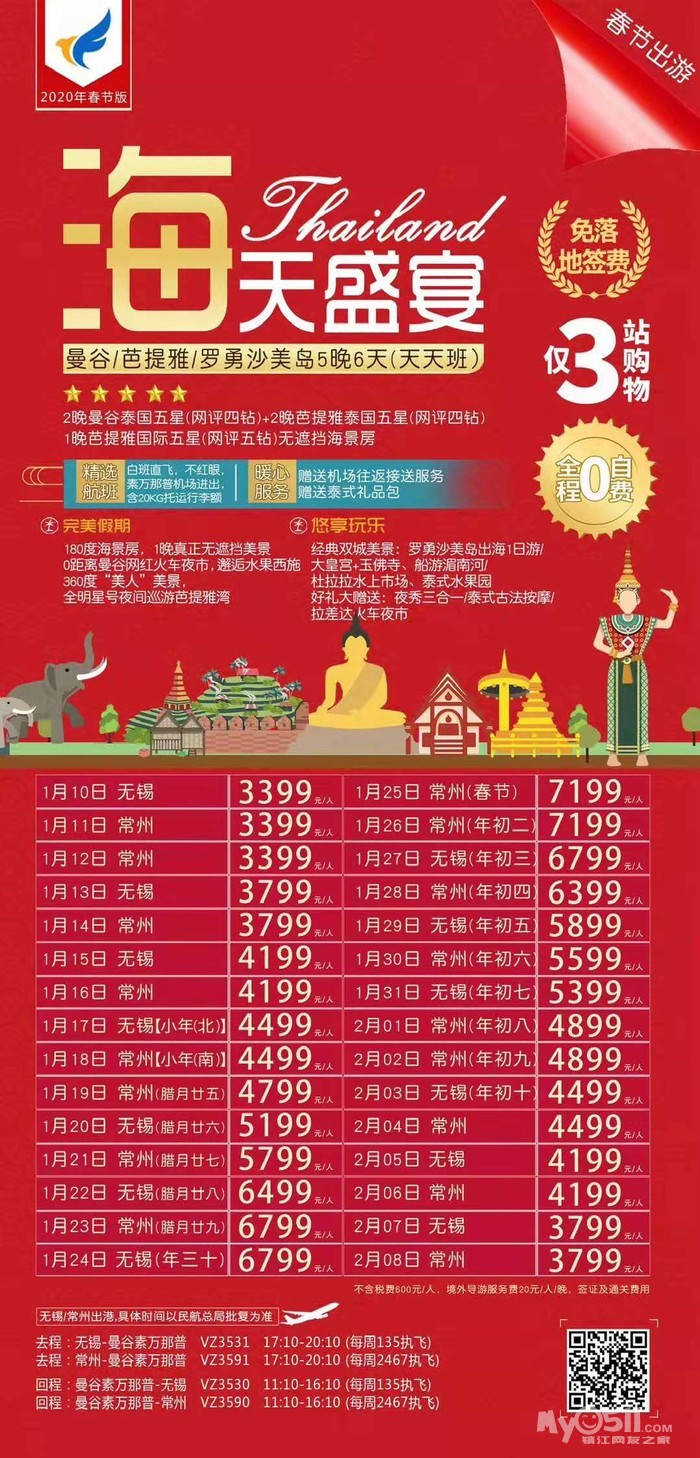 以下线路报名即送镇江至机场往返接送!!!