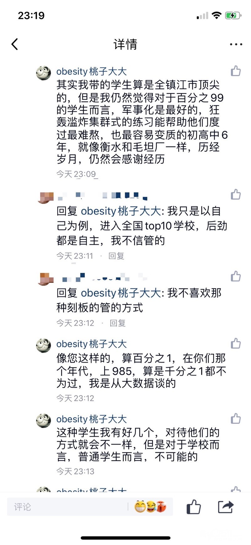 继昨天发了说说,今天跟我大学本科一个物理老师聊天,他也带初中物理小课,90年代的top10高校,万里挑一的人才也不为过,但!!!我仍认为军事化管理,集群式作业轰炸,衡水和毛坦厂式的教育,对于百分之99的人而言,是绝对正确的,经历过的人会感谢那段经历。