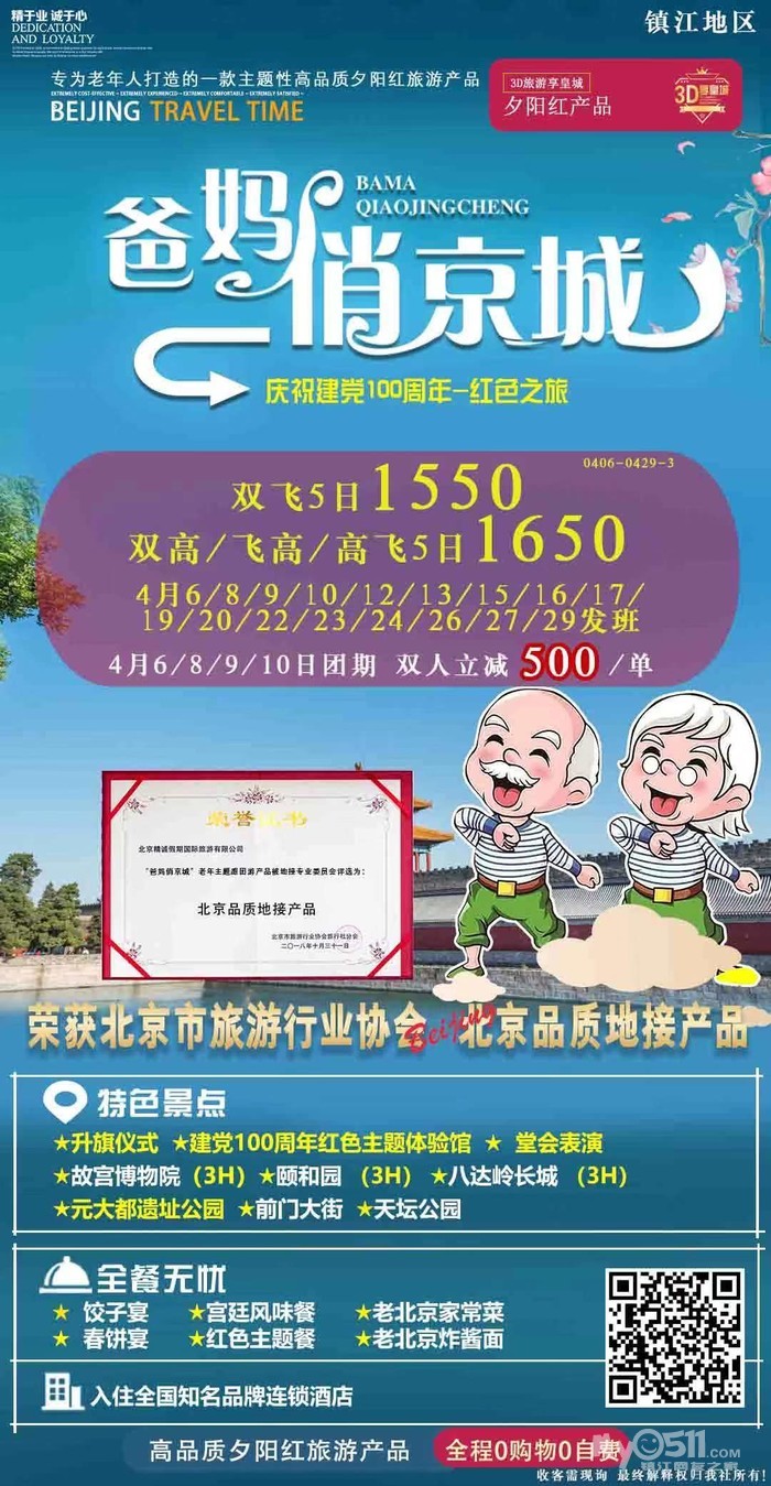 如果你的妈妈爸爸,还没有去过北京,一定要带他来参加,这个行程《爸妈俏夕阳》