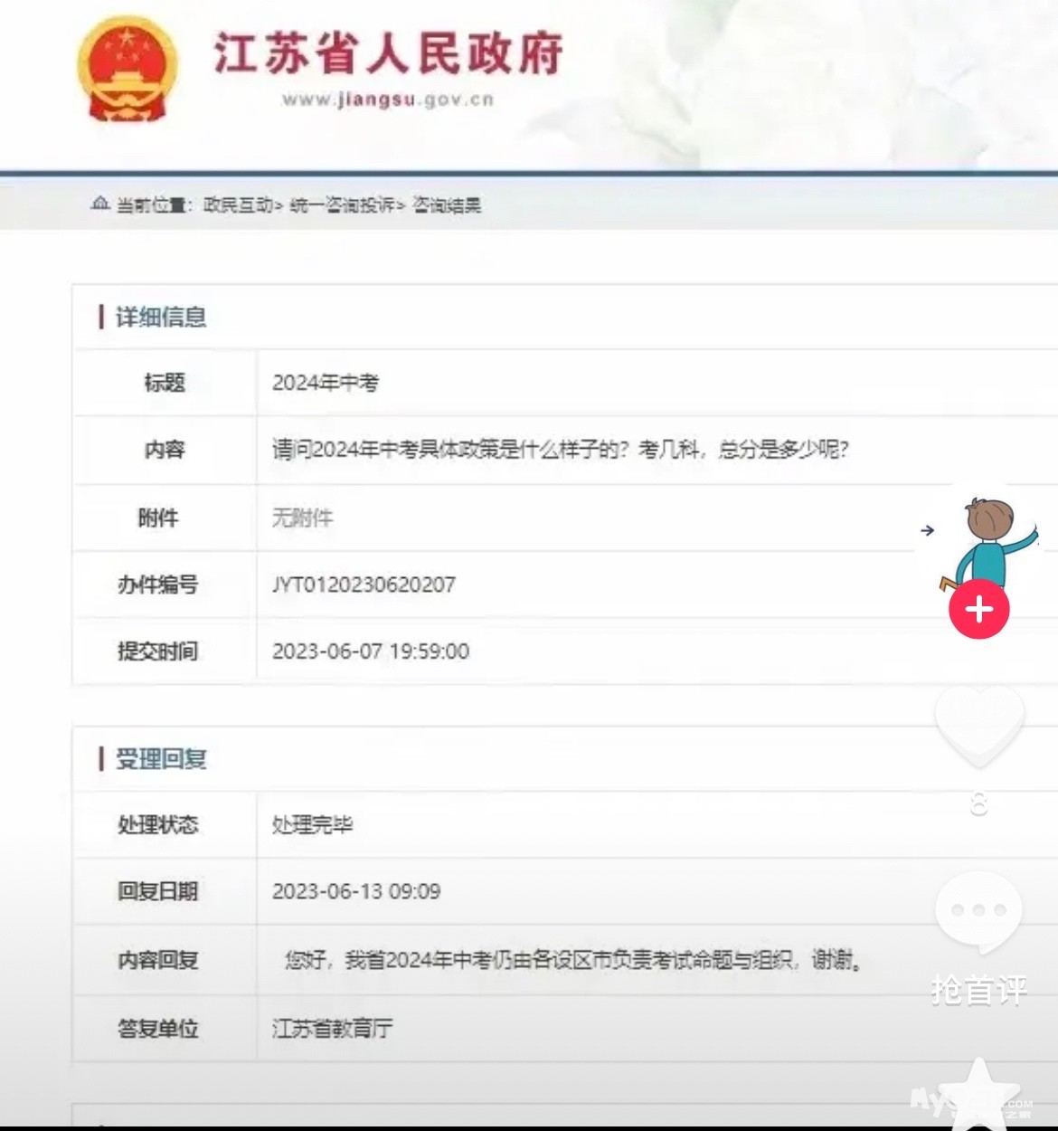 江苏省教育厅回复了。2024年中考不统考