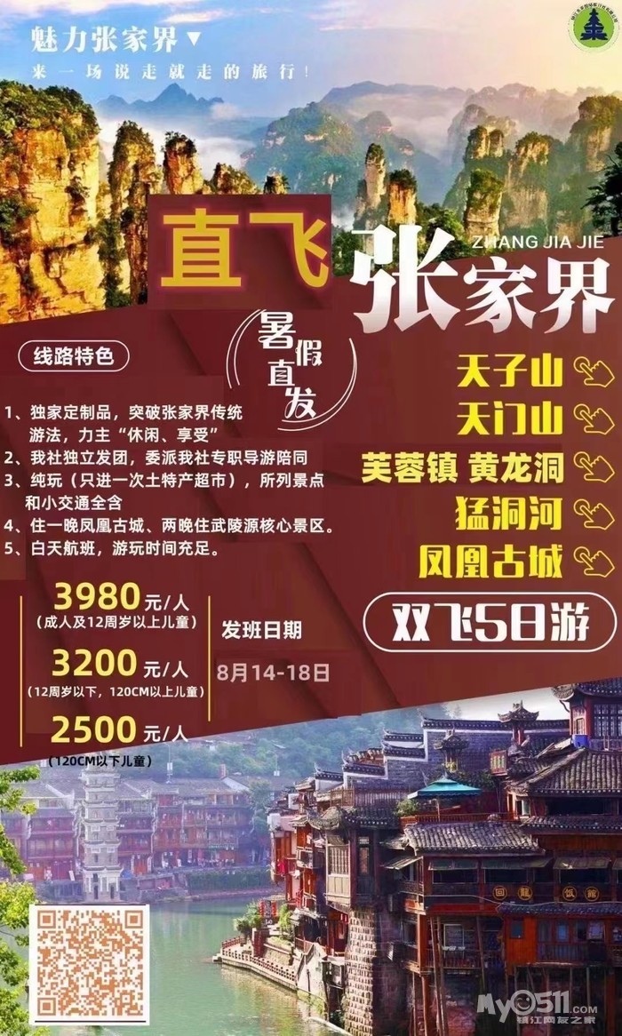 8.14-18直飞张家界5日游(镇江导游全程陪同,少量位置)