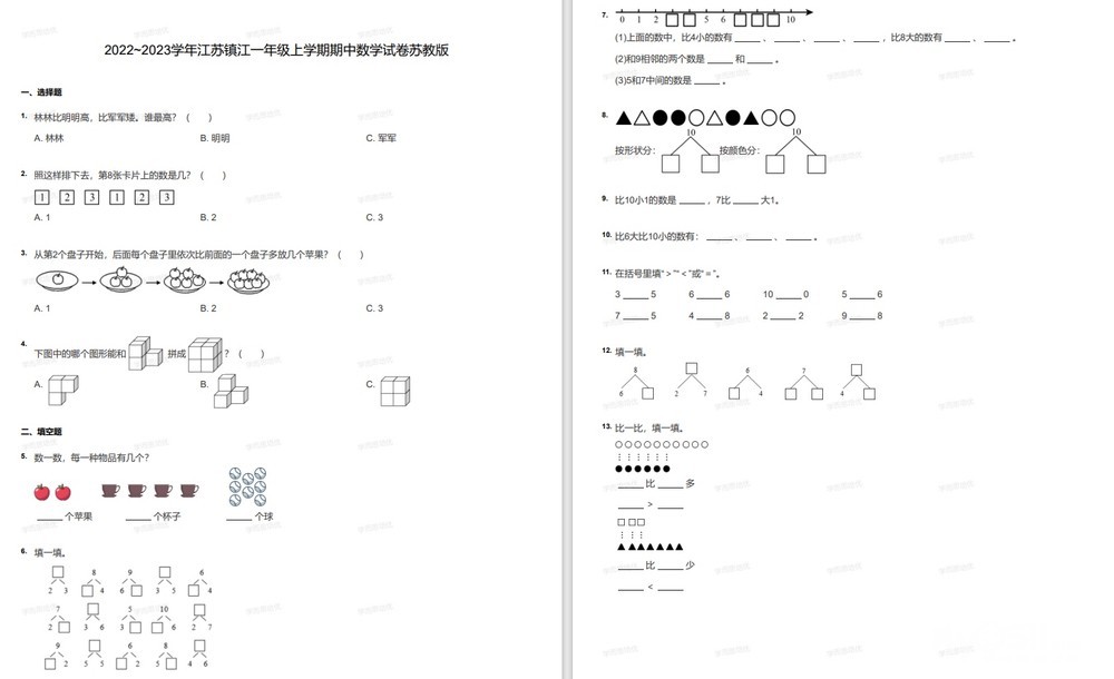 22-23学年镇江一年级上学期期中数学苏教版