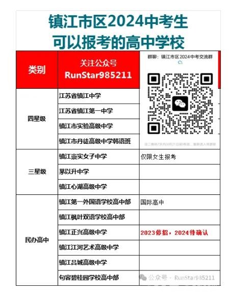 镇江市区2024中考生可以报考的高中学校